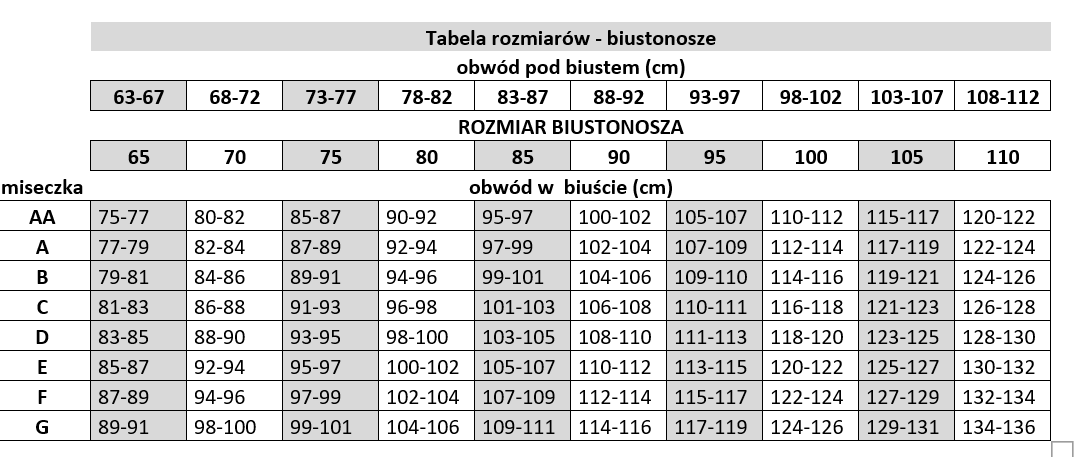 Przed doborem rozmiaru zmierz swój obwod pod biustem !!! i wtedy dobierz rozmiar biustonosza pooperacyjnego