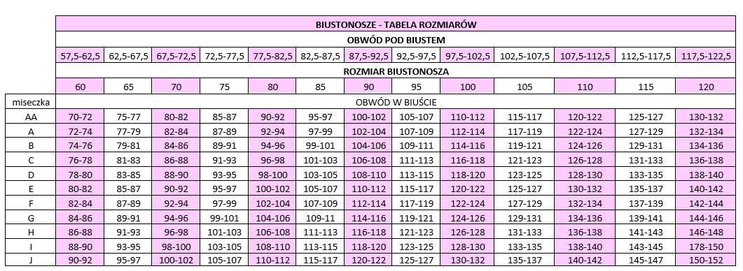 Przed doborem rozmiaru zmierz swój obwod pod biustem !!! i wtedy dobierz rozmiar biustonosza pooperacyjnego