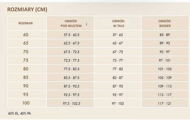 Body posiadają miękkie wykończenie pod biustem, zapewniają komfort noszenia, praktyczne zapięcie na zamek z przodu. Dwustopniowe zapięcie na haftki w kroku.